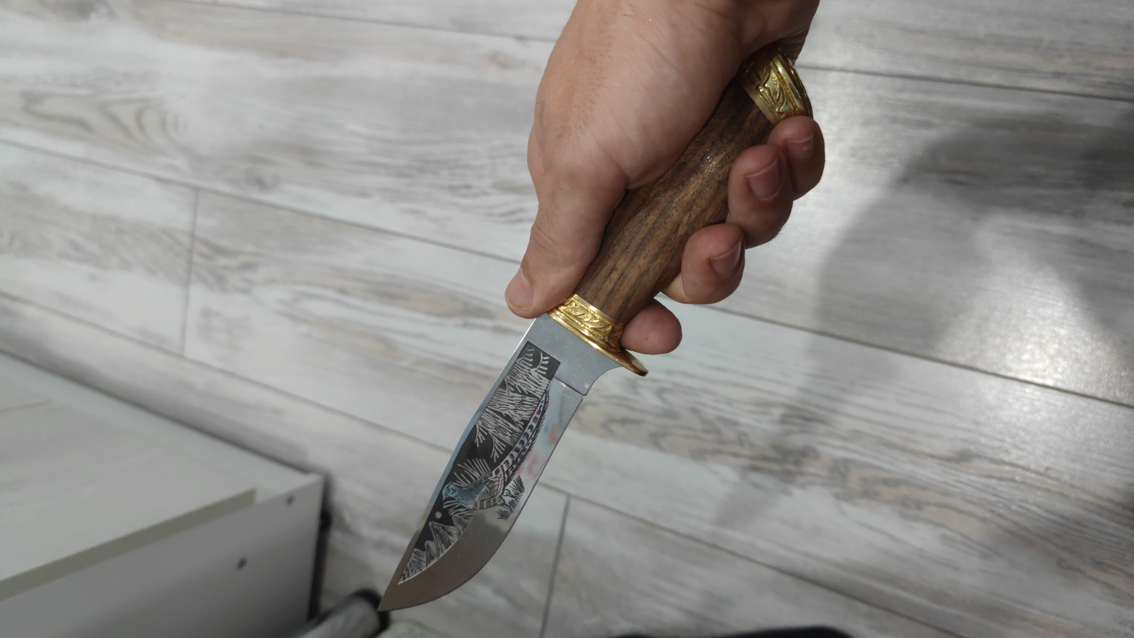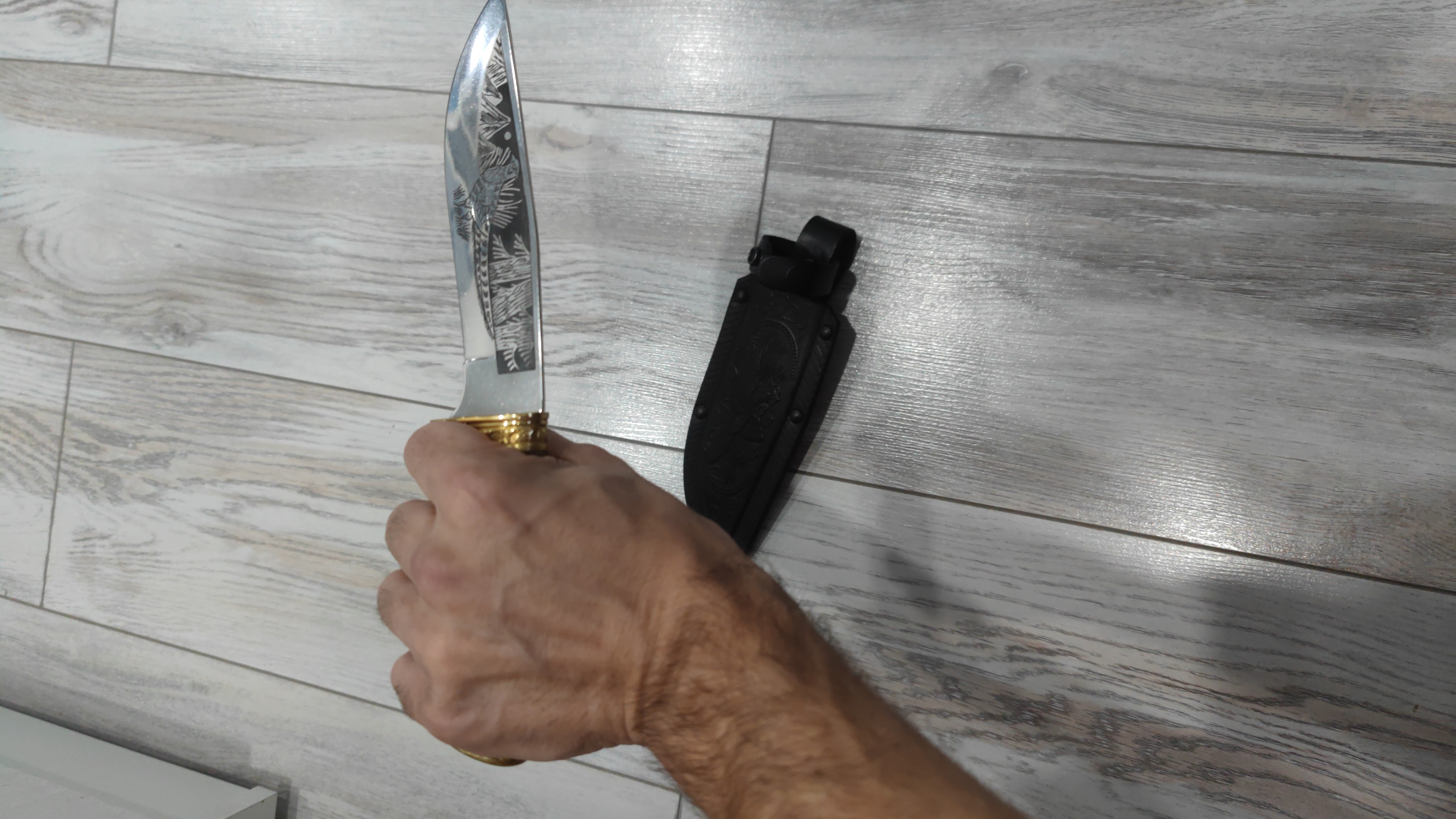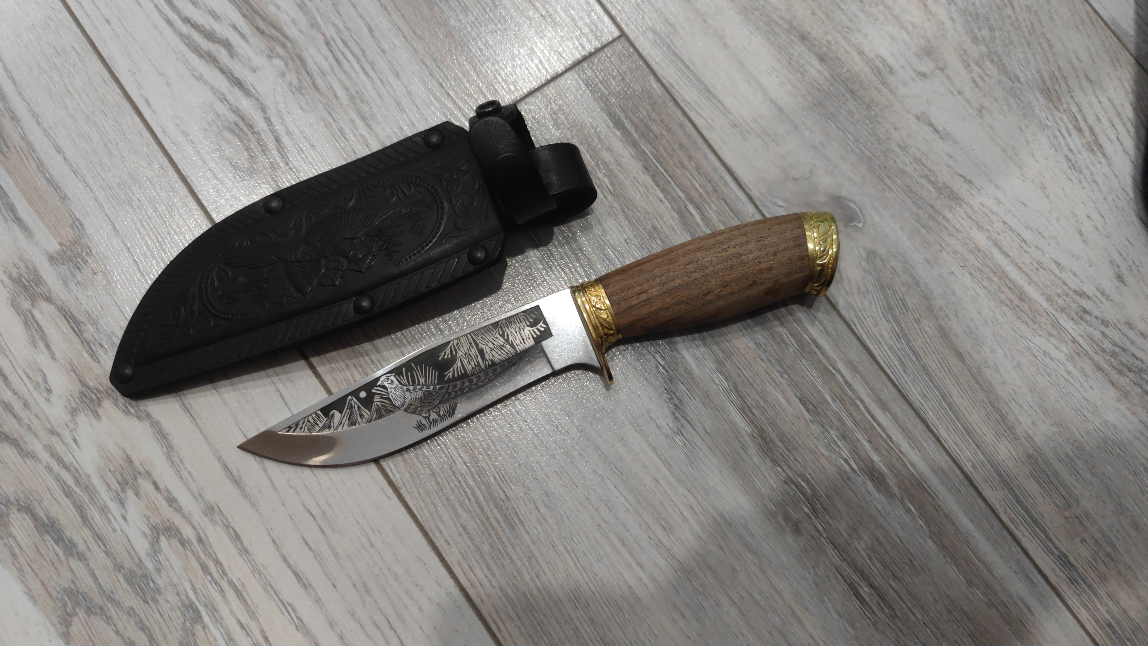 Нож очень понравился,удобно сидит в руке, режет невероятно, лучший нож который я держал в руке... Режет плавно и можно сказать сам, очень удобная форма клинка,здорово выглядит, спасибо большое....Ножны кожаные с тиснением,супер надёжные и качественные,безумно рад покупке... Обязательно в ближайшее время сделаю заказ ещё... Процветания Вам и сопутствия во всём,ребята красавцы и знают своё дело...